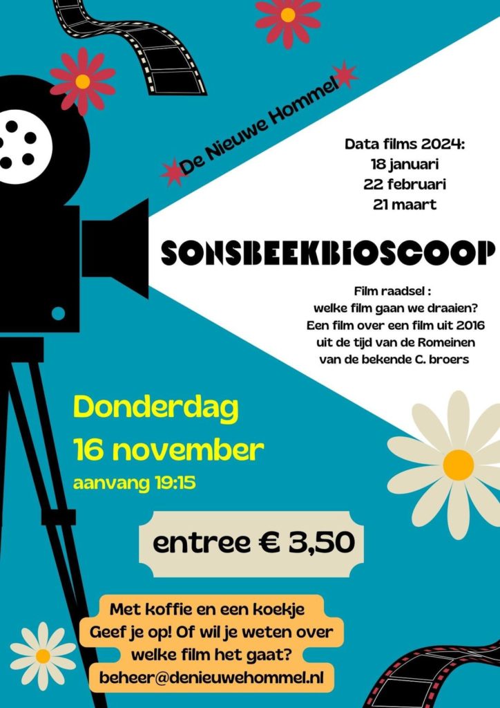 Een keer per maand draait er een film in de Nieuwe Hommel. Entree 3,50. Met koffie en een koekje. Geef je op! Of wil je weten over welke film het gaat? Vraag beheeer@denieuwehommel.nl. 18 januari, 22 februari en 21 maart.