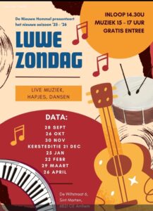 Home » Evenementen » Muziek Luwe Zondag zondag 22 februari 2026 Muziek Luwe Zondag Wanneer 22 februari 2026 14:30 - 15:30 Voeg toe aan agenda Download ICS Google Calendar iCalendar Office 365 Outlook Live